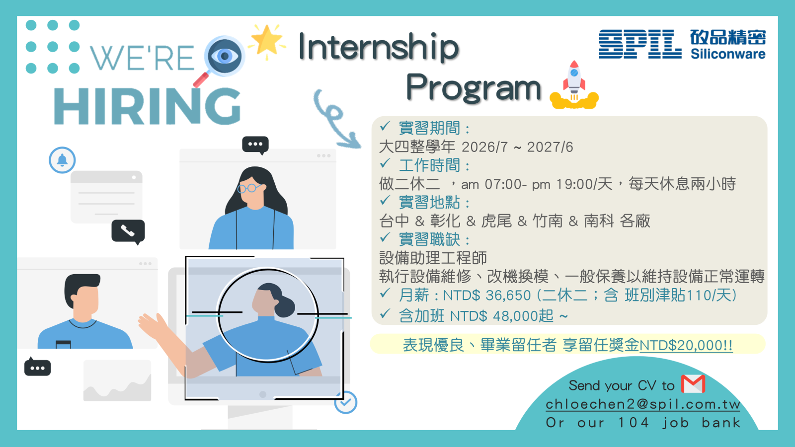 提升學生職場能力並建立人才培育通路,配合學校學分及合約辦理。 - 適用對象:大三學生(申請2026/9~2027/6學年實習)